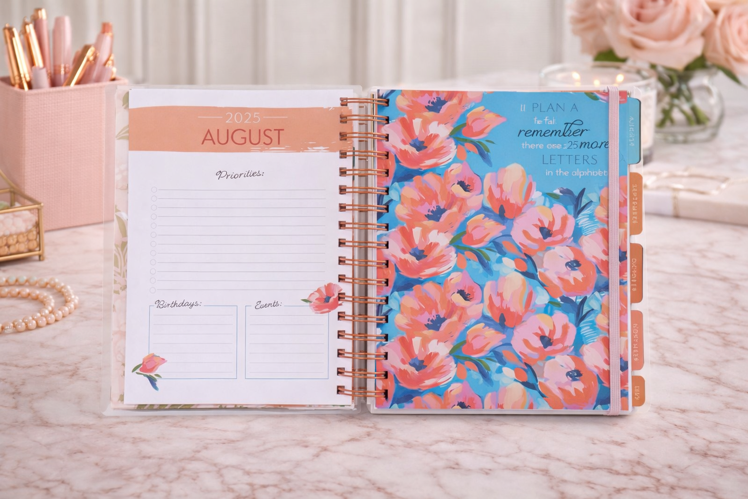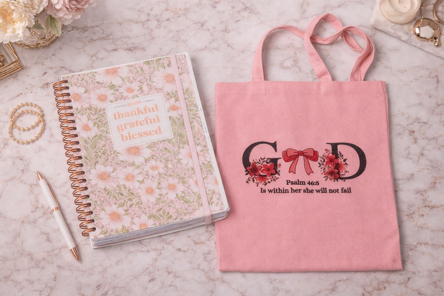 With tabbed monthly dividers, dot-grid note pages, and interior storage pockets, this planner combines faith, functionality, and feminine style — making it perfect for personal use or as a meaningful Christian gift.